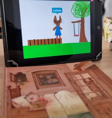 Vėliau šie filmai įgarsinami pačių mokinių balsais. Kituose projektuose naudojama ir programa „ScratchJr“, leidžianti sukurti judančias knygos ištraukas, kuriose veikėjai kalba vaikų įrašytais balsais. Nors galutiniai filmai trunka vos iki minutės, mokiniai labai greitai supranta, kiek daug kūrybos ir darbo reikia net trumpam rezultatui. Tokius projektus vainikuoja „kino vakarai“ klasėje su darbų peržiūra ir spragėsiais.