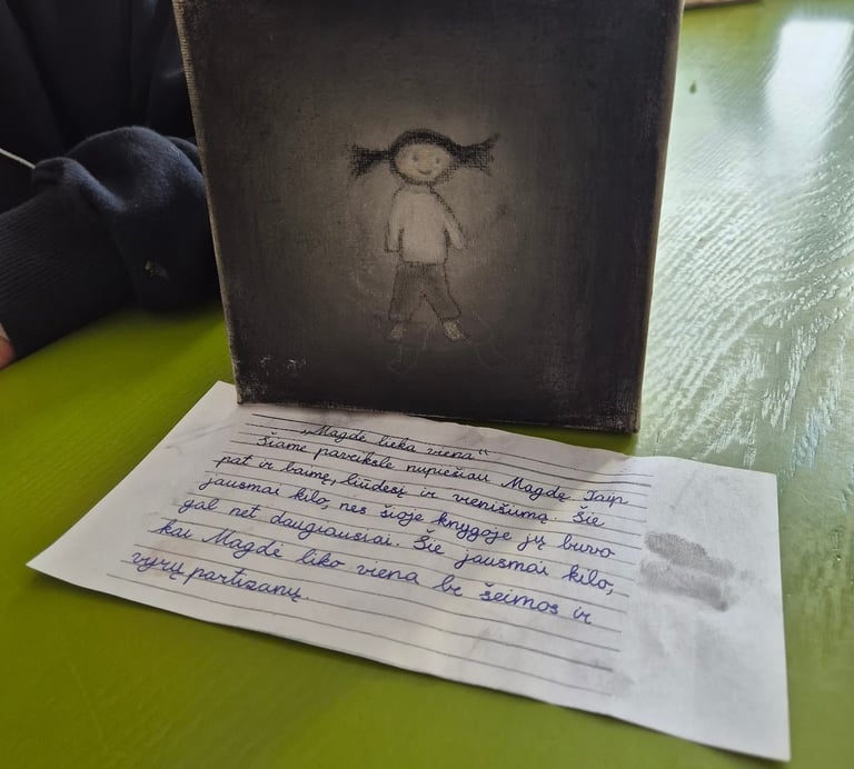 Sandra savo klasėje daug dėmesio skiria ir vizualiai kūrybai. Perskaitę knygą mokiniai kuria paveikslus – kartais vaizduoja konkrečias scenas ar objektus, o kartais renkasi abstrakčias interpretacijas, atspindinčias jų vidinę skaitymo patirtį.